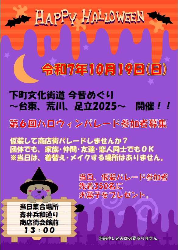 青井兵和通り商店街では、令和7年10月19日(日)12:00~18:00 にイベントを実施いたします。